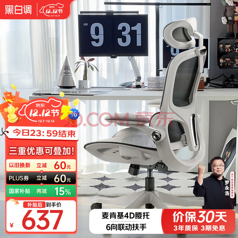 黑白调P2 Pro人体工学椅电脑椅办公椅人工力学座椅学习电竞椅子国家(809元)