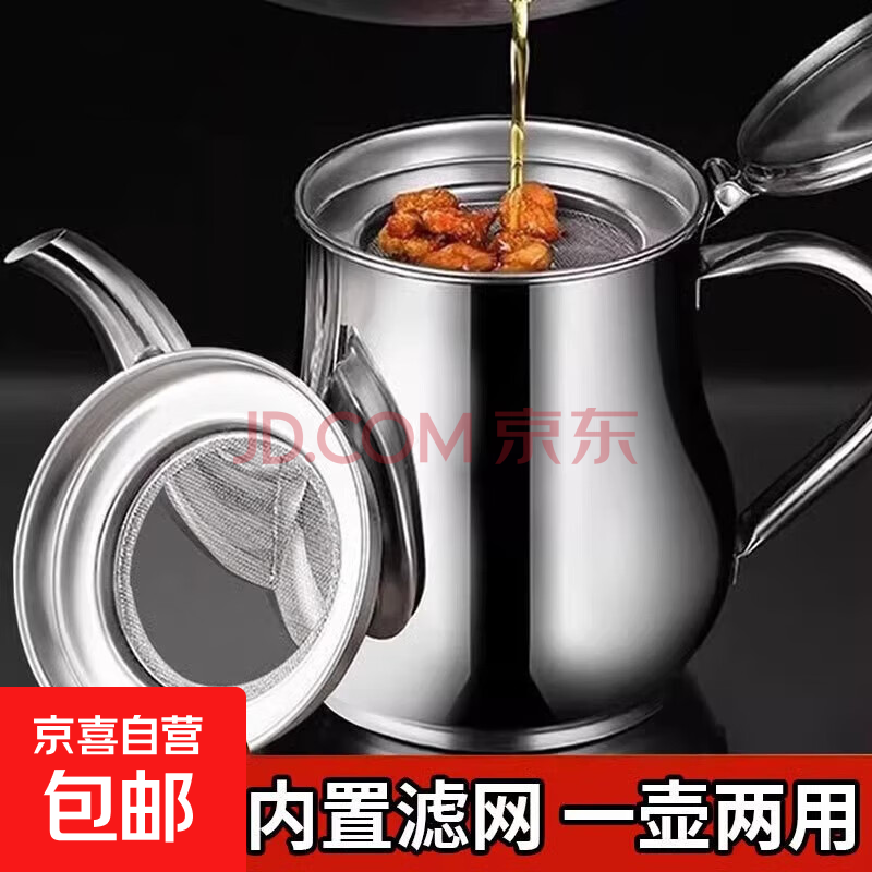 【不锈钢油壶】厨房防漏油罐壶家用带过滤网大容量滤油储油壶油瓶 (9.99元)