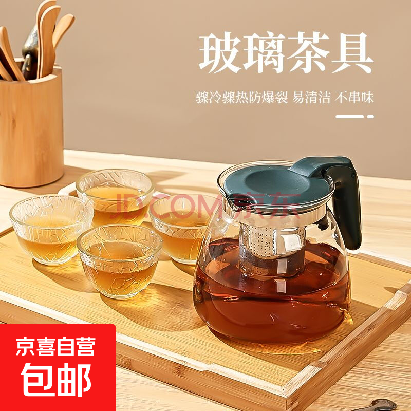一壶四杯茶壶套装 大容量玻璃茶杯带滤网耐高温水壶茶具无底座 100(9.99元)