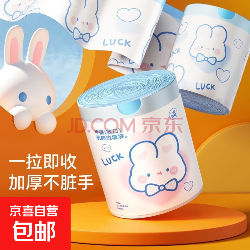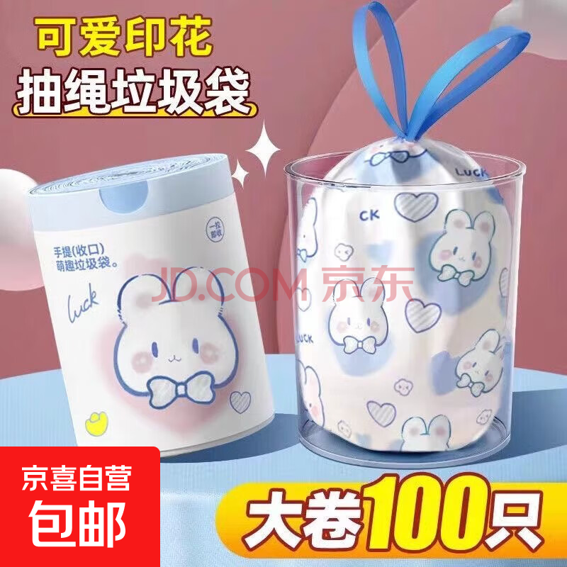 印花抽绳垃圾袋卡通兔子加厚萌趣自动收口拉绳手提袋垃圾桶塑料袋 (2.99元)