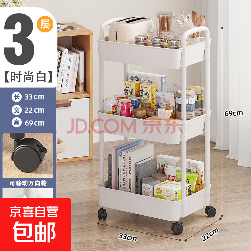 厨房置物架小推车落地家用可移动多层架子多功能放果蔬菜篮收纳架 (10元)