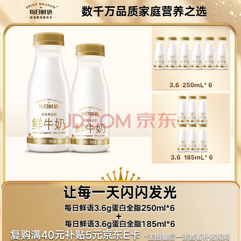 每日鲜语【全程冷运】3.6g蛋白250mlx6+3.6g蛋白185mlx6共12(54.9元)