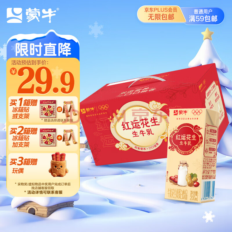 蒙牛牛奶花生双蛋白饮品苗条装200ml×12盒送礼礼盒装(29.9元)