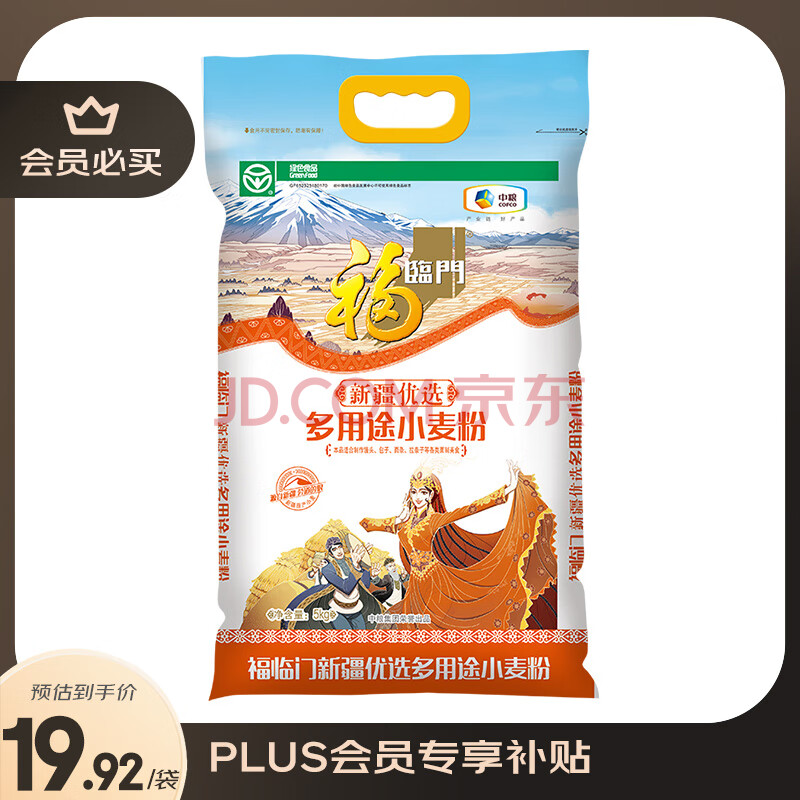 福临门新疆中筋小麦粉10斤 多用途家用面粉 包子馒头面条(39.9元)