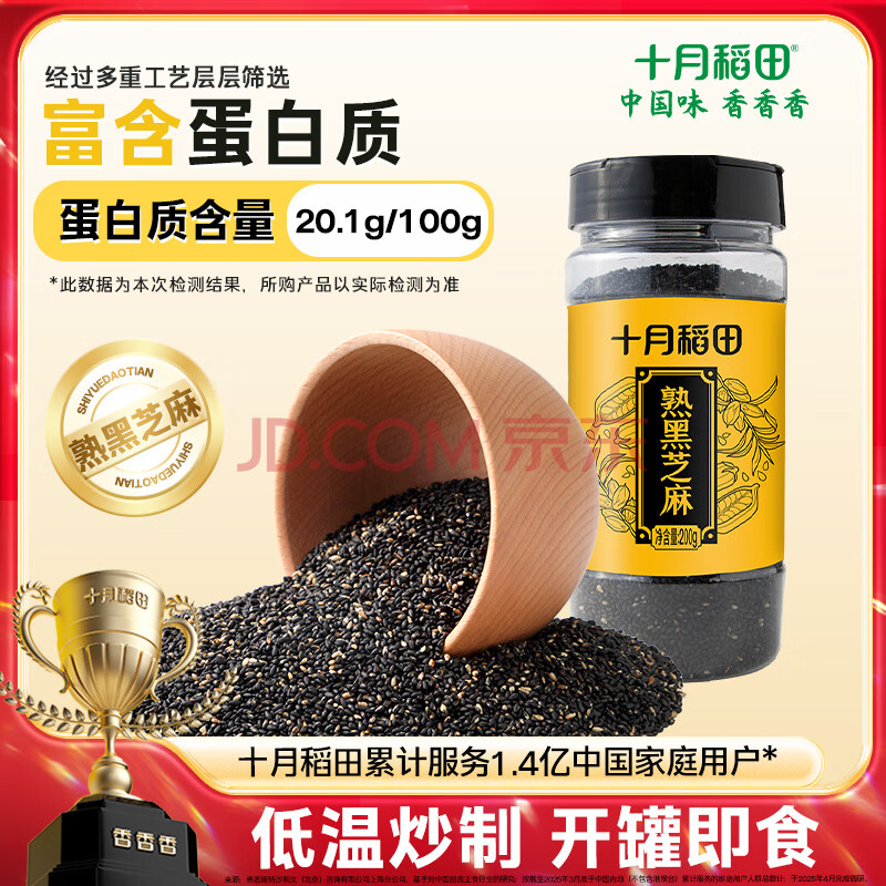 十月稻田 熟黑芝麻 200g 开罐即食 香醇饱满 五谷杂粮 高蛋白质(10.9元)