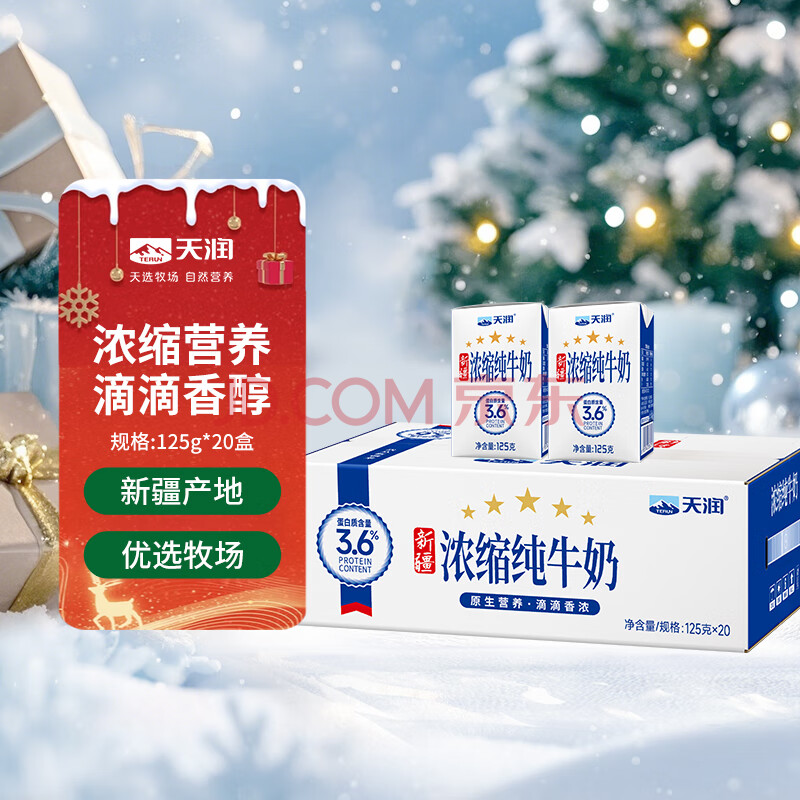 天润新疆五星浓缩纯牛奶125g*20盒 (无添加剂)礼盒装(39.9元)