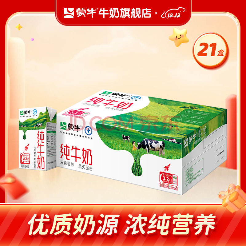 蒙牛纯牛奶全脂灭菌乳利乐包整箱礼盒装(部分10月产) 250ml×21盒(69.9元)