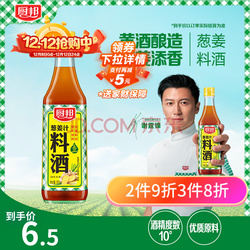 厨邦10度 葱姜汁料酒500ml 传统黄酒酿造 精制去腥增香调味料(6.5元)