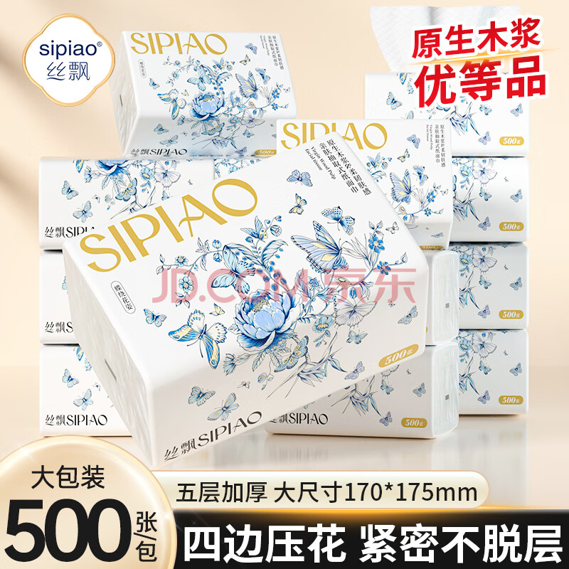 丝飘优等品抽纸纸巾5层加大加厚餐巾纸家用面巾纸母婴