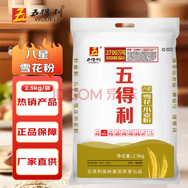 五得利面粉八星雪花小麦粉中筋白面馒头饺子面条包子食