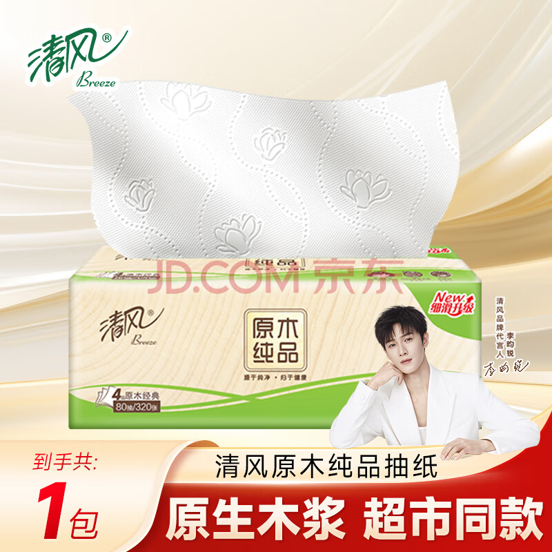 清风抽纸4层加厚320张餐巾纸卫生纸面巾纸家用整箱