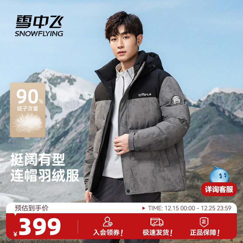 雪中飞2025冬新款羽绒服男士短款撞色迷彩时尚户外连帽运动(399元)