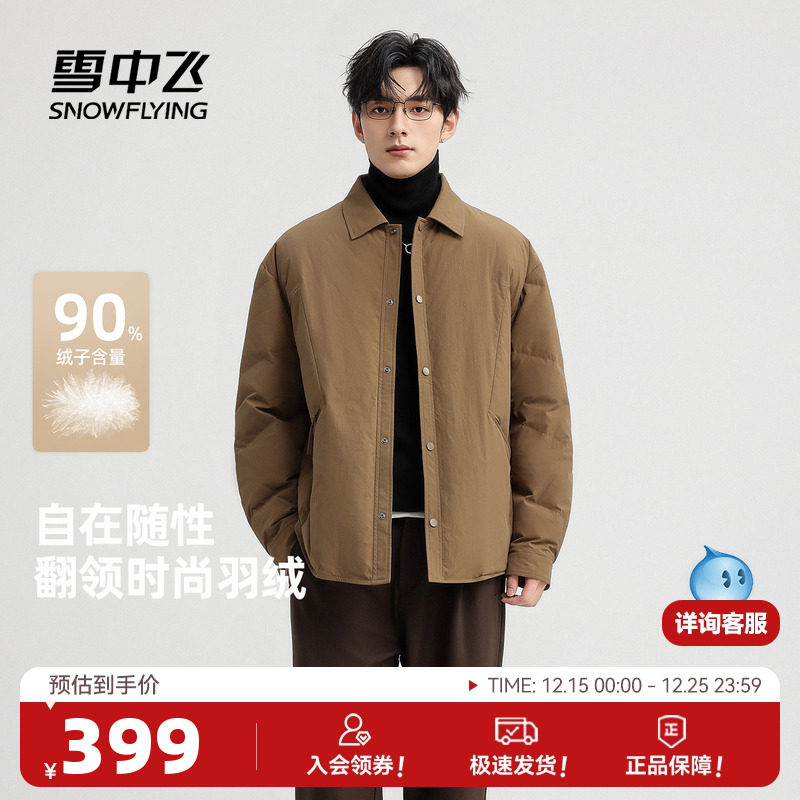 雪中飞2025冬新款羽绒服短款男士休闲翻领无缝线保暖夹克外套(399元)