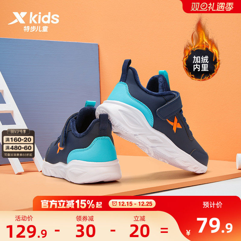 特步童鞋男童运动鞋休闲儿童鞋秋冬跑步鞋女童鞋革面跑鞋加绒棉鞋(79.9元)