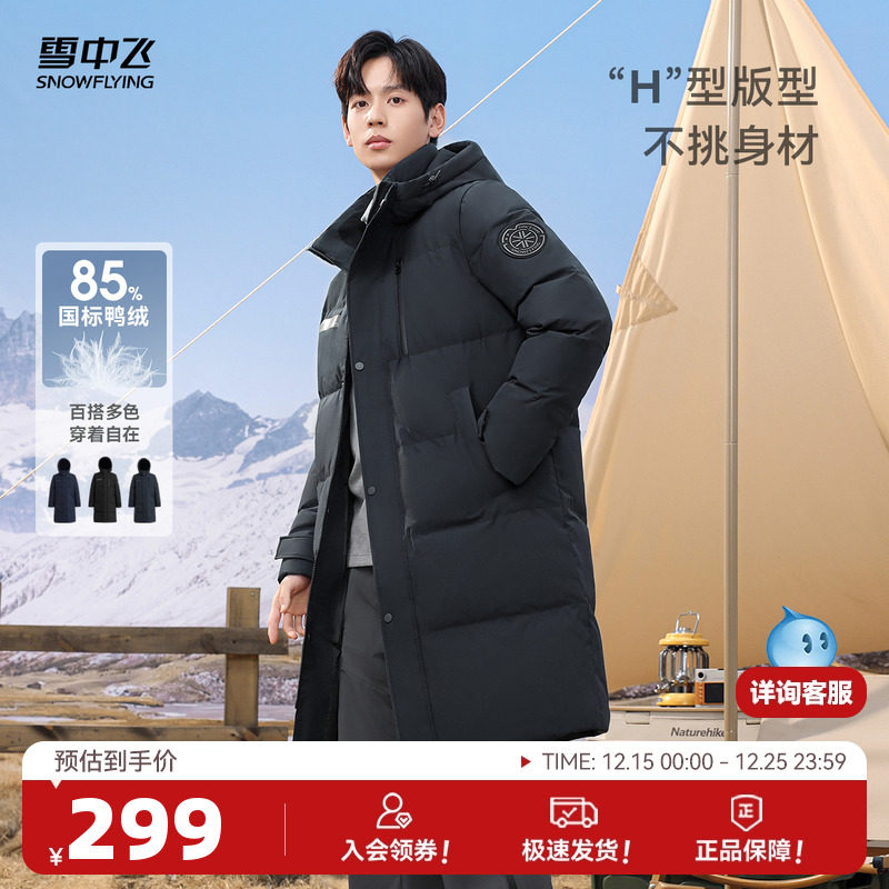雪中飞2025冬新款男女连帽长款羽绒服简约袖标时尚加厚大气百搭A(299元)