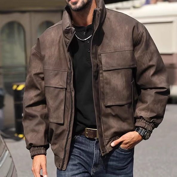 美式皮衣夹克男冬季新款男士冬装假两件秋冬加棉加厚大码男生外套(165元)