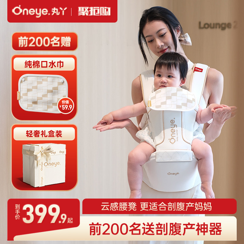 丸丫云感腰凳婴儿轻便透气小月龄宝宝外出背带二合一四季抱娃神器(379.9元)