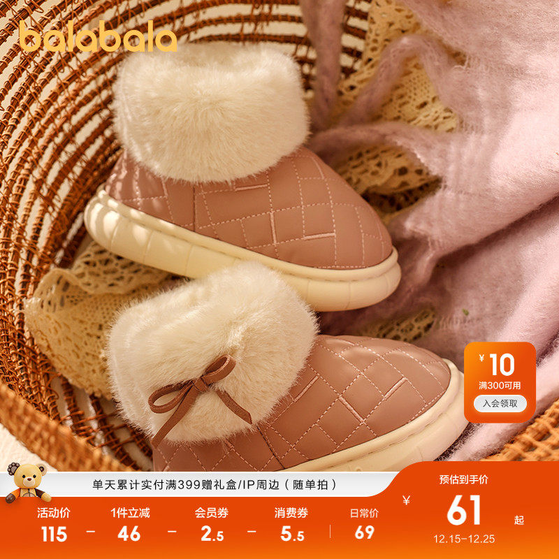 巴拉巴拉童鞋儿童棉靴加绒短靴女童家居外穿鞋子冬季保暖包跟靴子(69元)