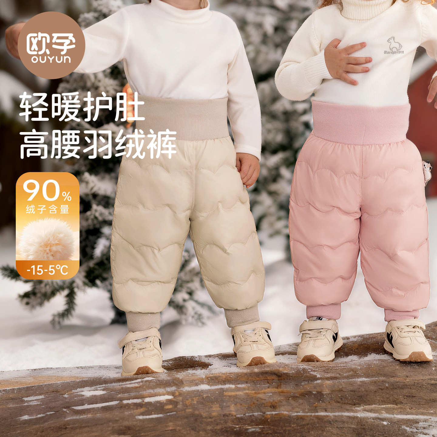 欧孕宝宝羽绒裤高腰女童秋冬外穿裤子2025保暖加厚白鸭绒男童长裤(84.9元)