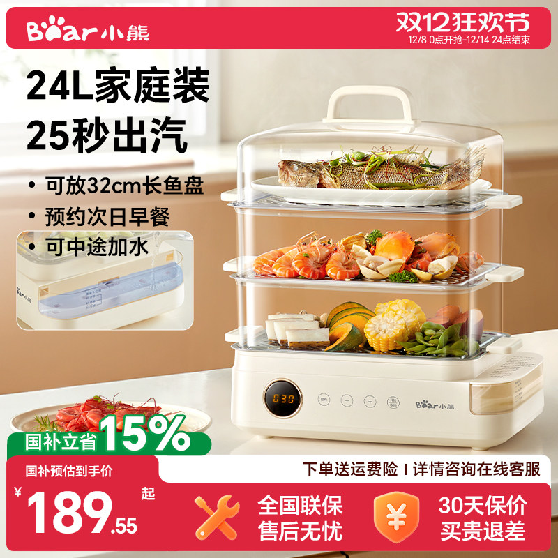 小熊电蒸锅多功能家用大容量保温定时预约蒸汽锅蒸烤箱早餐机神器(223元)