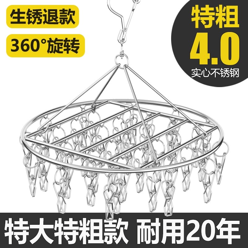 晾袜子衣架多夹子防风家用圆盘特粗不锈钢晾衣夹挂钩神器晒衣架(3.66元)