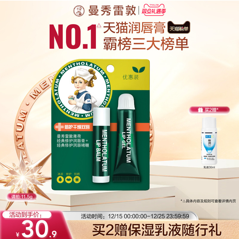 曼秀雷敦薄荷唇膏女保湿滋润补水淡化唇纹润唇膏官方唇膜唇霜男(16.9元)