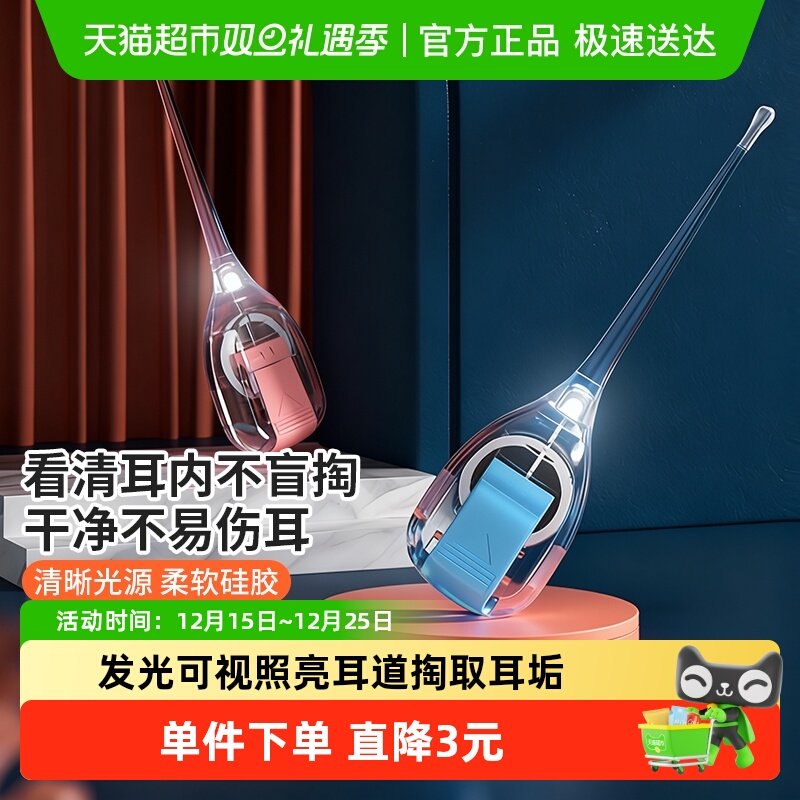 婴儿掏耳勺儿童发光耳勺可视耳勺挖勺硅胶软头耳屎清理掏耳朵带灯(12.9元)