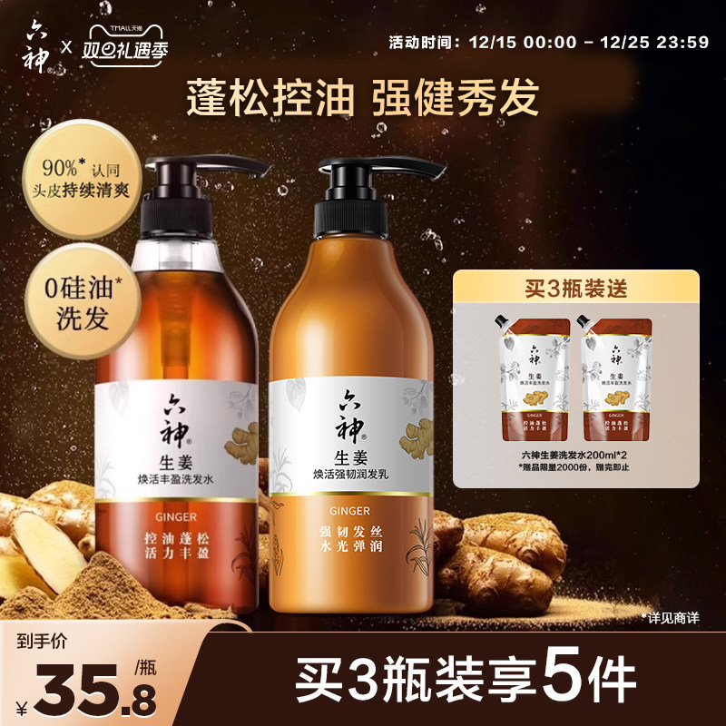 六神生姜洗发水洗发露控油蓬松焕活720ml护发素柔顺亮泽秀发720ml(29.6元)