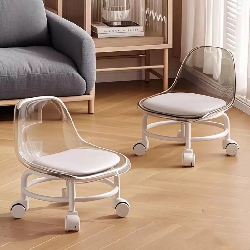 万向轮小凳子软座滑轮矮凳带娃儿童椅子靠背透明圆凳家用美缝板凳(13.8元)