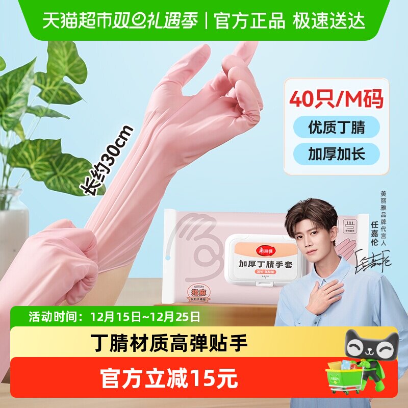 美丽雅丁腈加长手套抽取式非一次性手套耐用家务清洁厨房洗碗(19.9元)