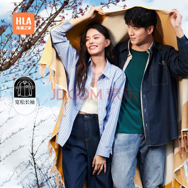 HLA海澜之家长袖时尚衬衫女装春季竖条纹宽松休闲衬衣女(178元)