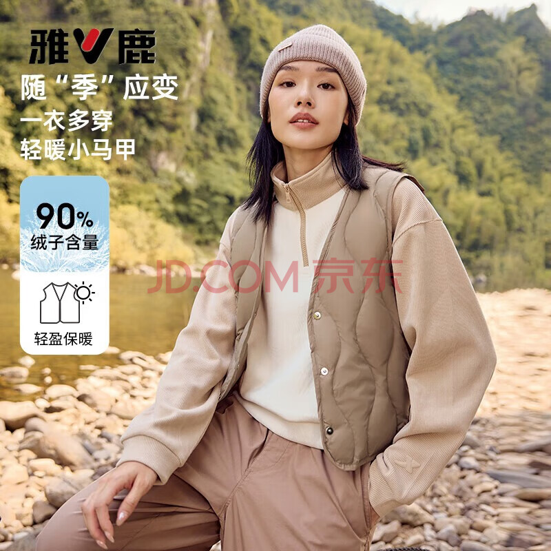 雅鹿羽绒马甲女2025年秋冬新款轻薄内胆保暖时尚贴身大衣内搭V领背(78.99元)