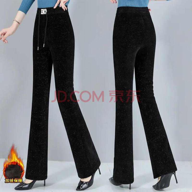 高腰加绒加厚喇叭裤女秋冬新款保暖休闲裤宽松显瘦松紧微喇裤百搭 (99元)