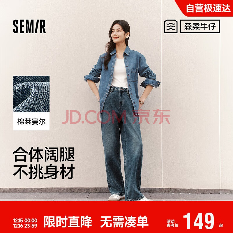 森马(Semir)森柔牛仔丨牛仔裤女潮流显瘦裤子25春秋季宽松阔腿裤(220元)