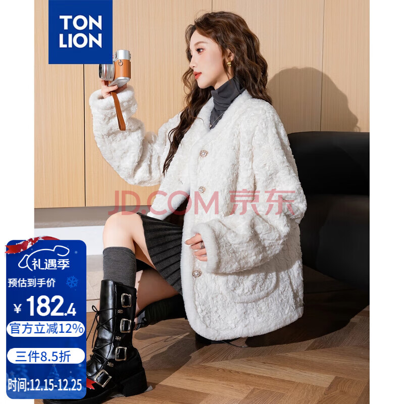 唐狮(TonLion)2025小香风外套女仿羊羔绒高级感气质宽松上衣潮流(249.9元)
