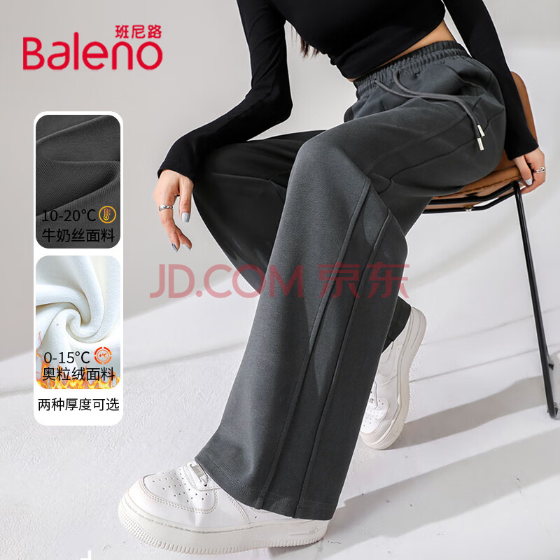 班尼路(Baleno)时尚拼接直筒裤女2026年春季新款高腰垂感藏肉舒适(69.9元)