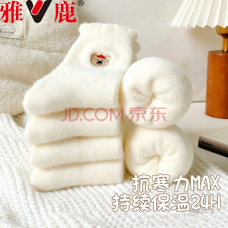 雅鹿女士袜子冬季加绒加厚保暖长筒袜白色睡眠月子袜秋冬款高腰中筒(5.1元)