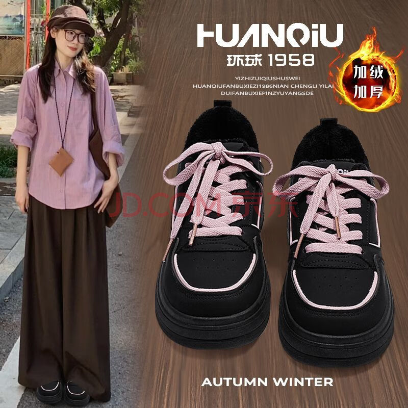 环球(HUANQIU)冬季加绒甜酷黑粉鞋女2025秋冬保暖潮流原创百搭厚(69元)