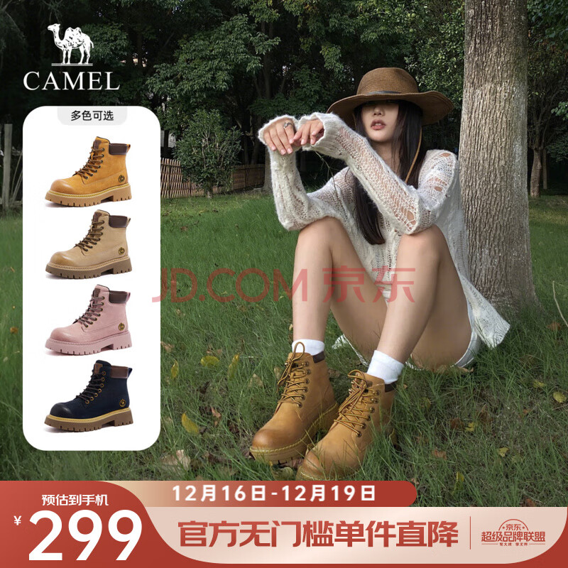 骆驼(CAMEL)【迪丽热巴同款】山越马丁靴秋冬新款高帮户外工装靴(299元)