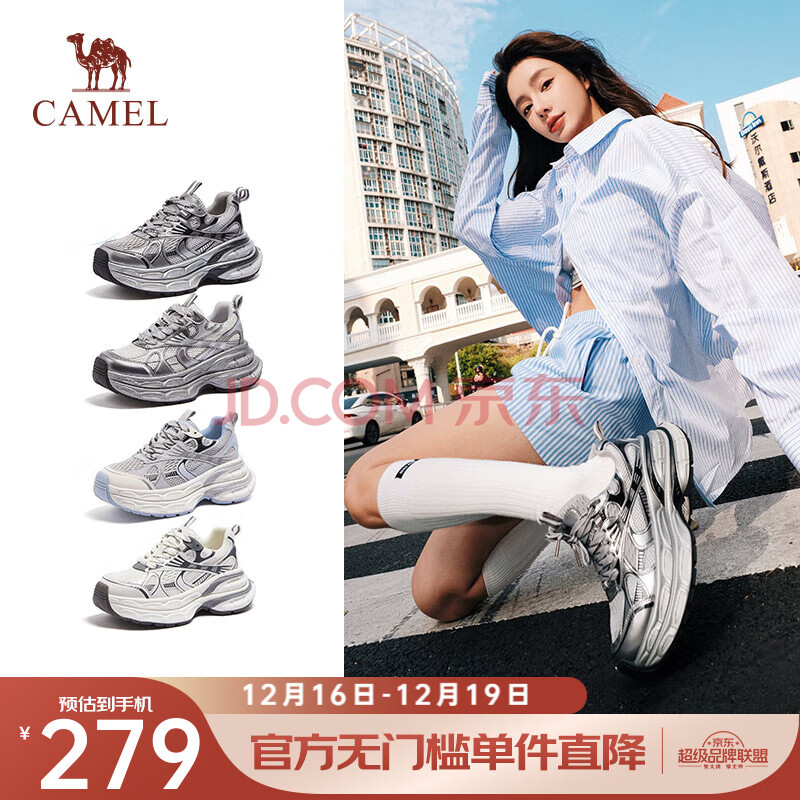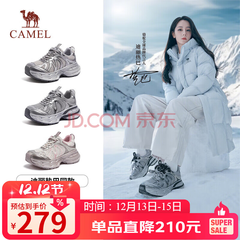 骆驼(CAMEL)【迪丽热巴同款】银月2代老爹鞋秋休闲鞋 L25A283148(279元)