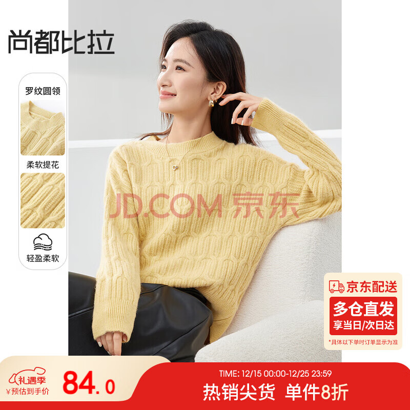 尚都比拉慵懒风内搭毛衣女冬季加厚保暖上衣高级感宽松针织衫秋收黄(105元)