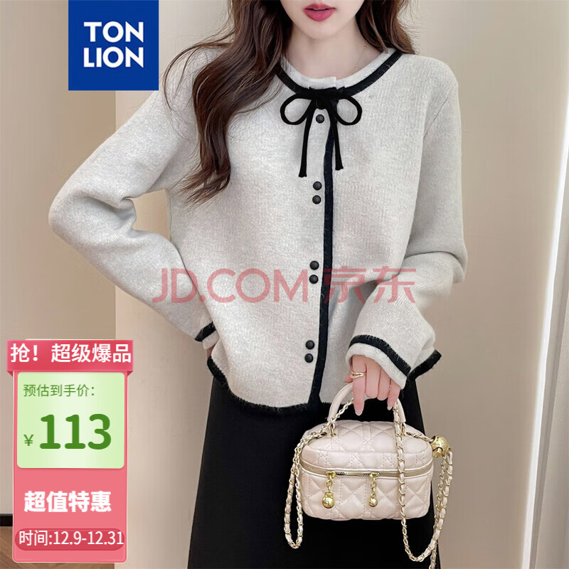 唐狮(TonLion)2025秋季女圆领撞色设计开衫简约气质温柔百搭淑女(113元)