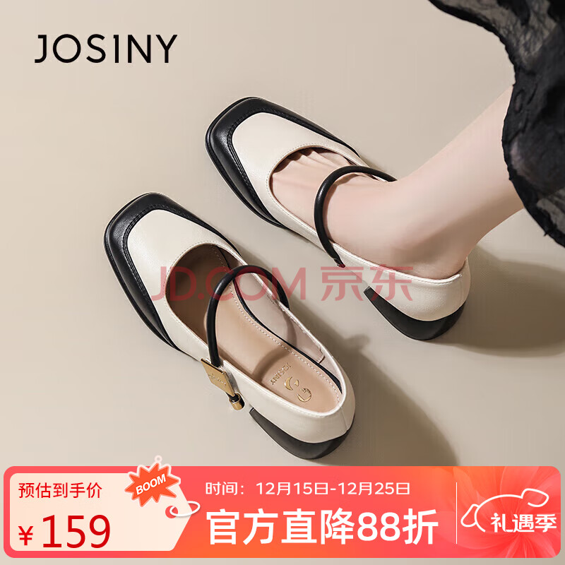 卓诗尼玛丽珍鞋女时尚粗跟法式复古配裙子方头百搭浅口单鞋 米黑 3(181元)
