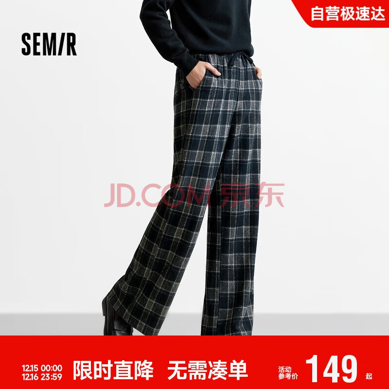 森马(Semir)休闲裤女冬格子加绒长裤宽松2025盐系复古潮流阔腿裤(249元)
