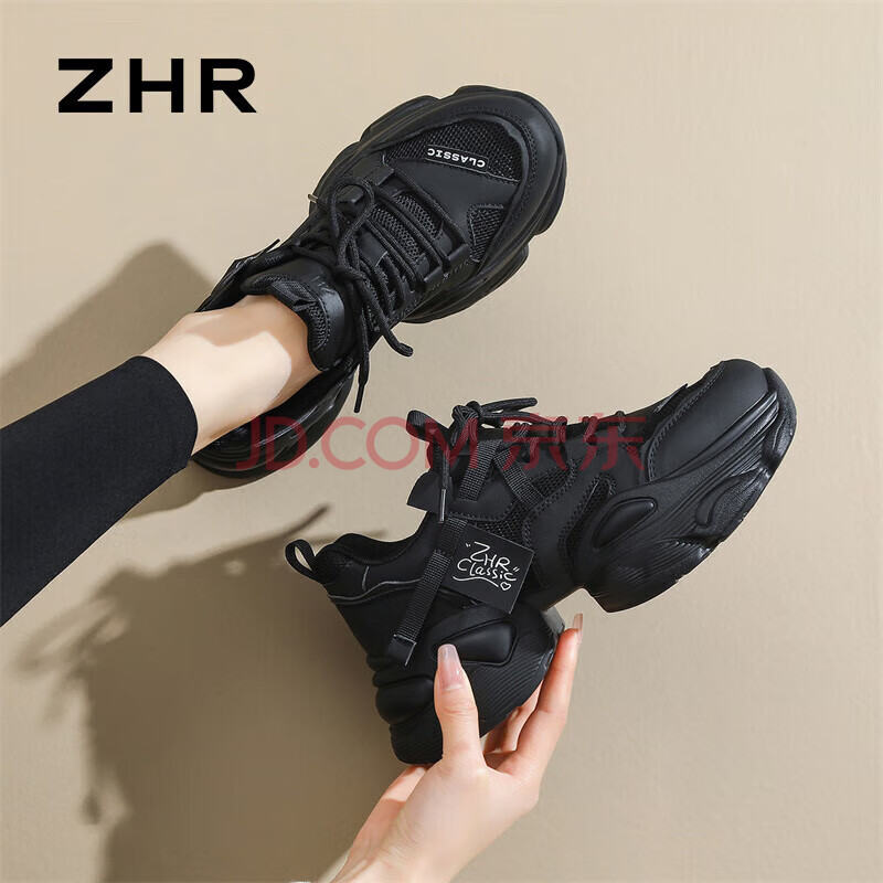 ZHR老爹鞋女运动跑步厚底休闲鞋女潮流透气舒适拼接女鞋 G673黑色 (169元)