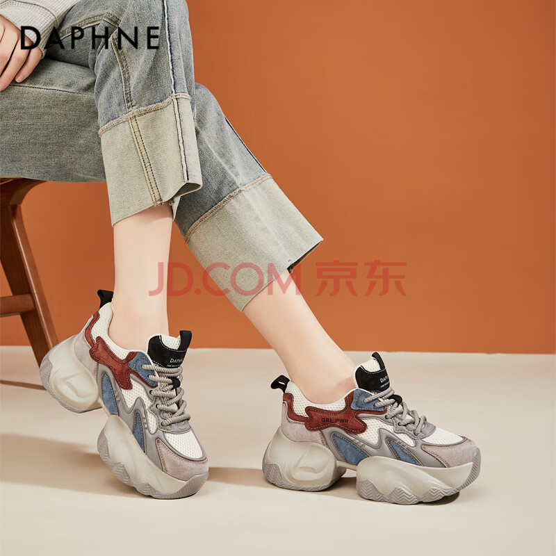 达芙妮时尚拼色老爹鞋女厚底高跟运动休闲鞋潮款舒适女鞋 灰蓝色 3(329元)