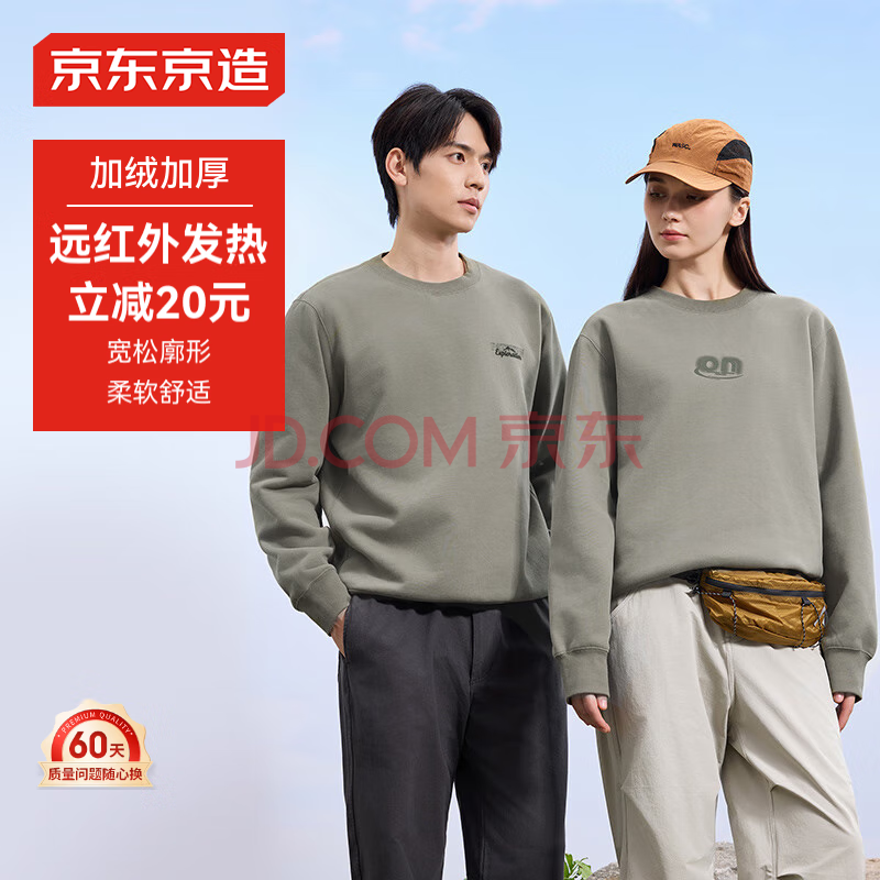 京东京造卫衣男圆领长袖t恤男加绒重磅24秋季休闲潮流外套 卡其绿 (139元)