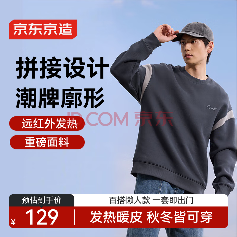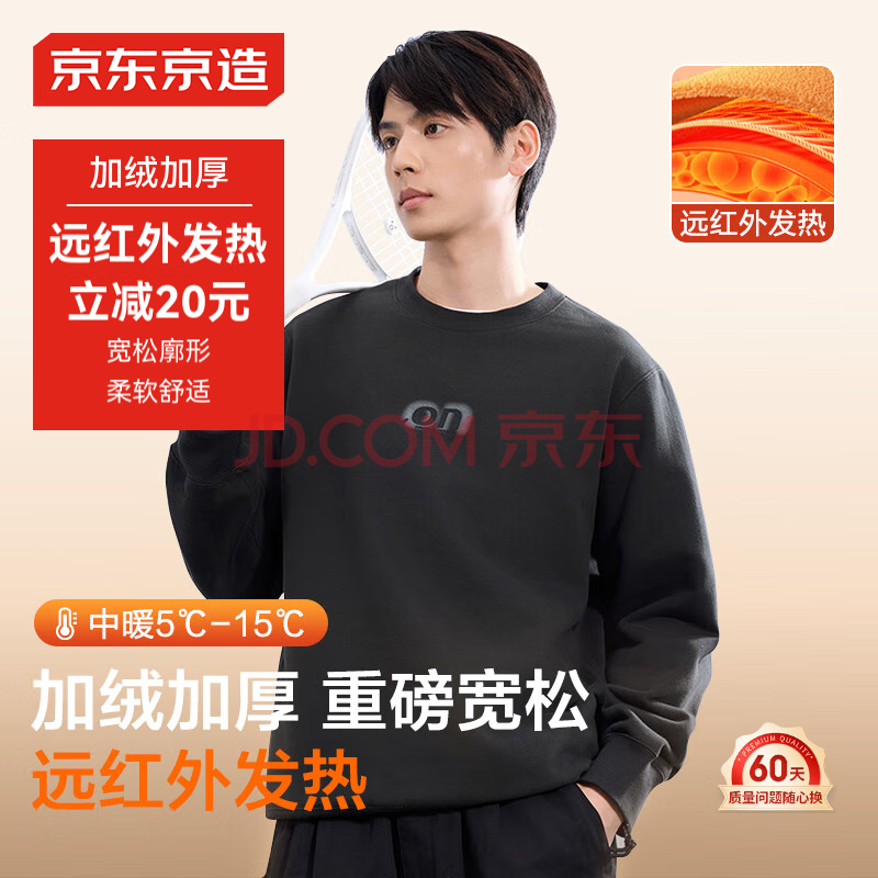 京东京造卫衣男圆领长袖t恤男加绒重磅24秋季休闲潮流外套黑色 XL(139元)