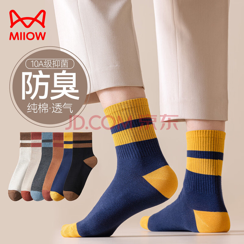 猫人(MiiOW)男士袜子男【100%纯棉袜6双】秋抑菌防臭中筒袜潮流休(46.9元)