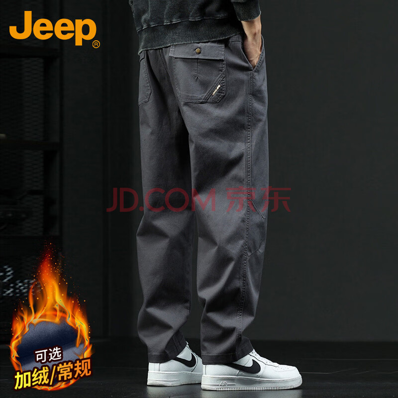JEEP吉普休闲裤男秋冬季直筒裤子男士宽松潮流工装裤男裤 深灰 XL(193元)